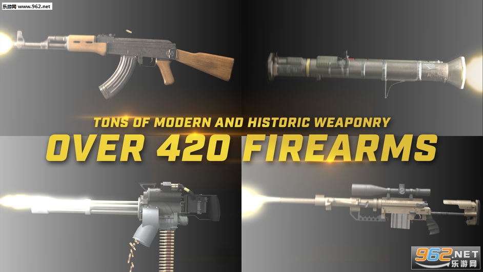 火爆逼真——超逼真的枪支模拟,包括动态模煳和烟雾,玩家界面简单易学,让用户可快速地开始使用自己的枪支收藏。