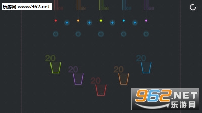 3、进行过程中只有将相同颜色的小球画线撞击到同一个杯子中就是完成。