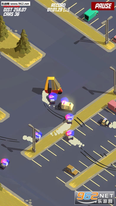 玩家需要驾驶汽车,巧妙利用地形或者障碍,摆脱警车的围追堵截,挑战更高的分数记录!