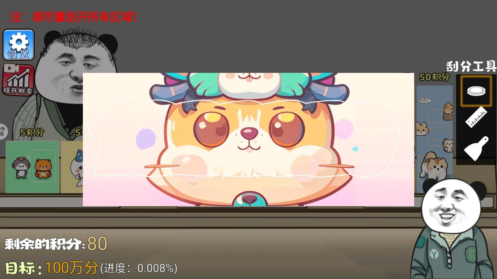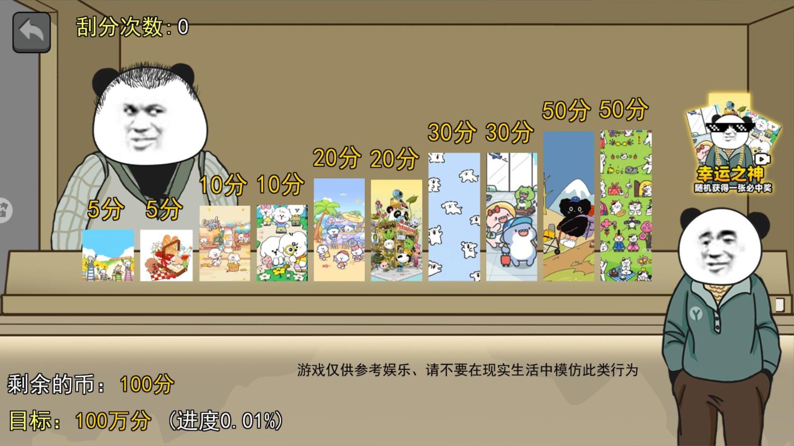 暴富刮刮乐是一款模拟休闲游戏,玩家只需不断购买刮刮乐,中奖金额达到目标数额就可通关,游戏可以体验一夜暴富的感受,无需氪金,中奖概率极高,快来体验看看吧。