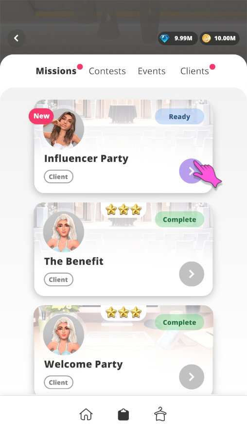 打开闪耀时尚明星游戏,进入首页,点击下方按钮,查看任务