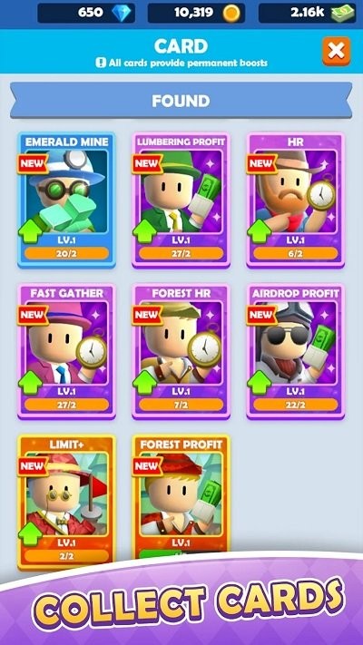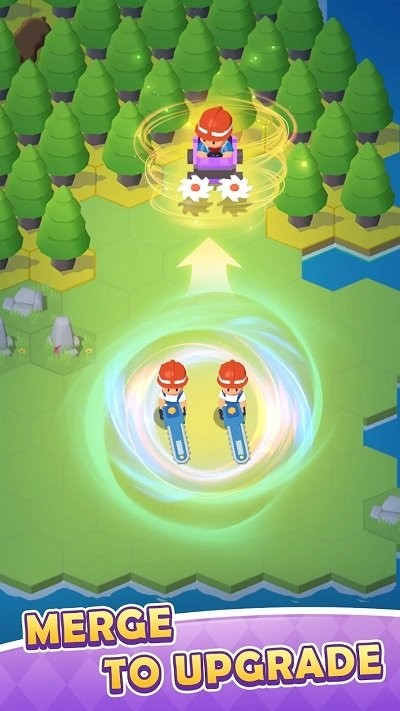1.随着游戏的深入,合并伐木工人,提升他们的能力,使你的木材生产效率飞速提升