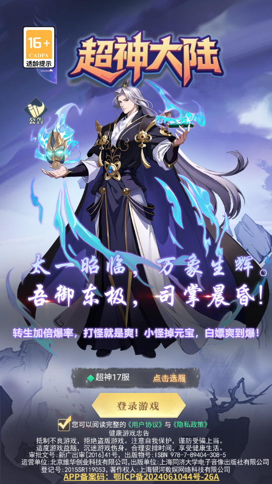 《超神大陆》是一款国风神话题材的RPG放置手游,以轻国风美学构建沉浸式神话世界,融合中国古代神话与修仙文化。玩家将从凡人起步,通过摸鱼挂机轻松成长,收集炫酷萌宠助战,最终踏上万仙之尊的传奇之路。游戏主打“不内卷”体验,福利资源拉满,结合动态剧情与放置玩法,让玩家在云海仙境中感受御剑乘风的逍遥与热血征战的爽快。