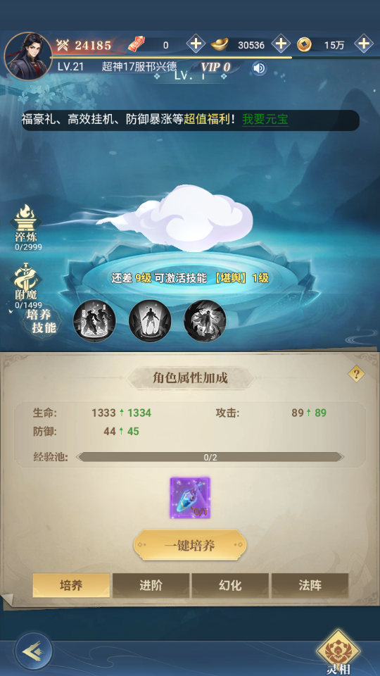 2、下方有仙法灵物可以提高战力