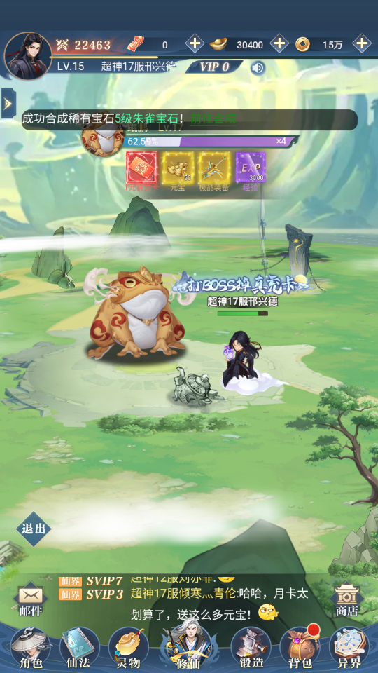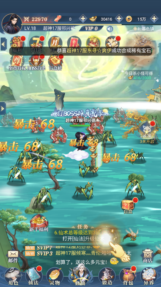 1、进入游戏后,主要通过完成任务获取资源修仙