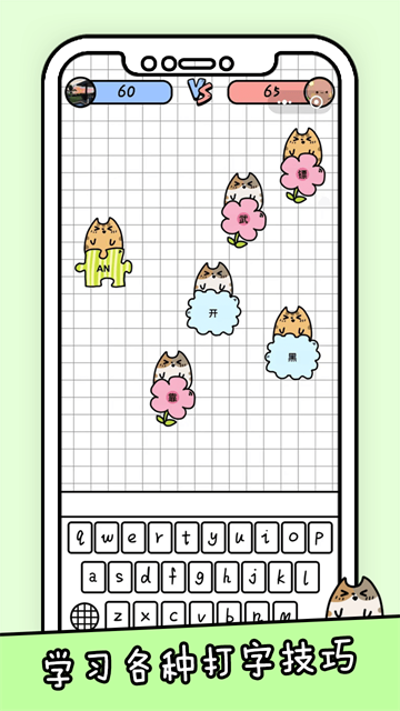 你会打字吗是一款既可以锻炼玩家的打字效率和速度,又能能够体验各种文字乐趣的休闲小游戏,游戏玩法模式丰富多样,将打字和消除主题结合在一起,你打字的速度越快,消除速度也会随之加快,各种不同的单词和汉字都可以随时来挑战,任务不同,玩家们面临的难度也是不一样的,看看你能够获取多少分数,让你在打字的过程中也可以放松心情。