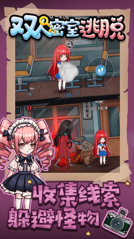 双人密室逃脱不管是场景设计还是剧情走向都充满了恐怖惊悚的氛围,玩家这次作为学校中的学生,要想安全逃离这里,就需要利用你的智慧和勇气去寻找尽可能多的线索和道具,来躲避学校中不断追捕你的鬼怪,并找到机会逃离恐怖的学校,游戏玩法内容十分丰富,各个不同类型的谜题关卡可以随时切换体验,其中可以帮助你的线索就隐藏在各个不起眼的角落中,不同难度等级需要的应对方法也是不同的,玩家在闯关时一定要冷静判断,充分发挥自己的观察力!