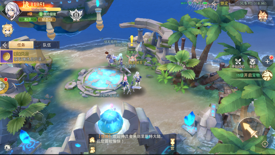 1、进入游戏后,点击左边的任务,可以自动寻路,前期也主要跟随任务走