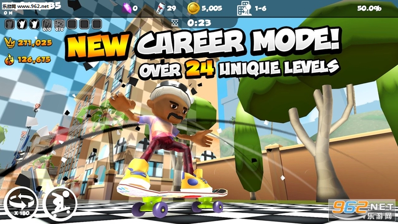这是一款全新打造的滑板元素的动作跑酷游戏!游戏拥有核心的物理引擎支持,玩家可以在游戏中选择个性化的滑板皮肤,挑战不同主题的游戏关卡,还可以自由搭配好玩的服饰和配件,轻松闯关!
