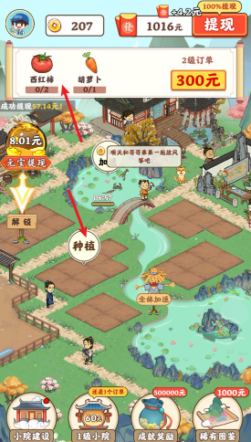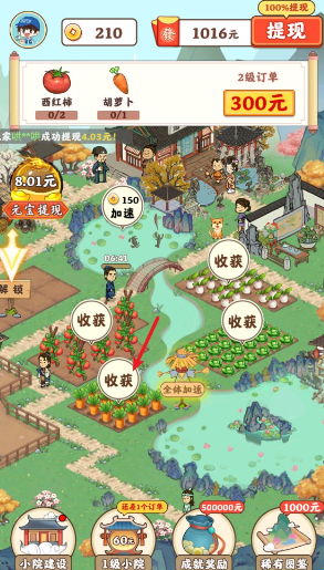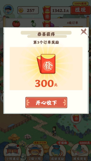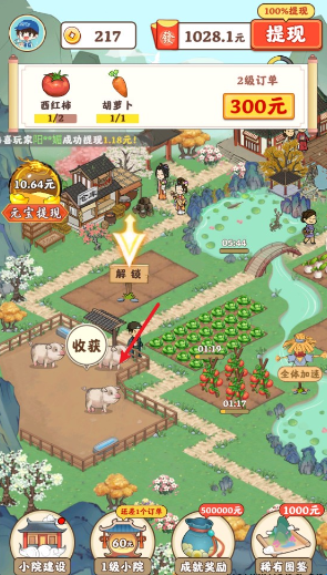 3、记得多多建设自己的小院,解锁升级你的菜地、牧场、果园等设施,提高种植和养殖的效率,帮助你完成更多订单。