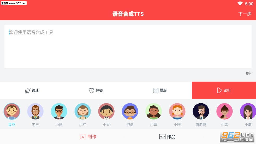 《语音合成TTS手机版》是一款为朋友们打造的文字配音工具,软件使用简单,朋友们将需要配音的文本复制到软件中,然后选择蜡笔小新、樱桃小丸子、四川话、东北话、陕西话等各种不同的语音,加上背景音乐后点击合成即可,可以调整语速,进行试听。