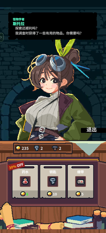 4、进入地牢后每次前往下一层都会进入新的房间,随机的各种事件将会给你新的道具。