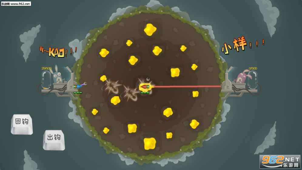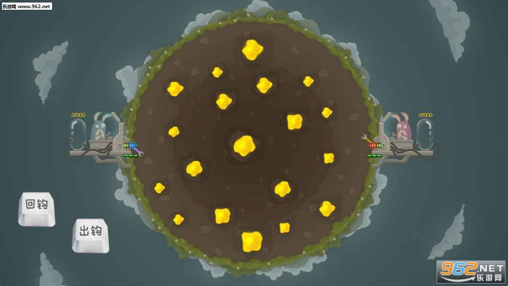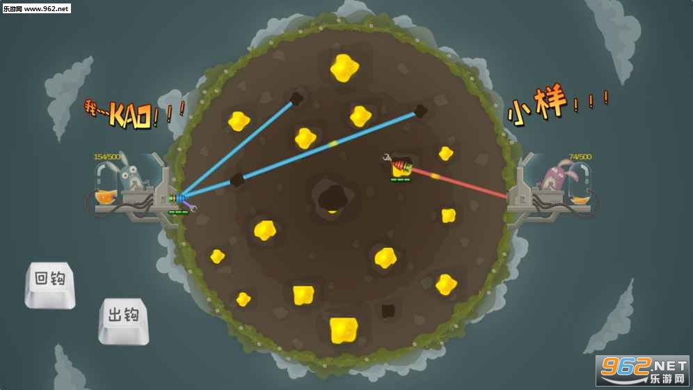 发射你的钩爪射向金块,构建输液线,提取矿液,最先获取500单位液体取得胜利.