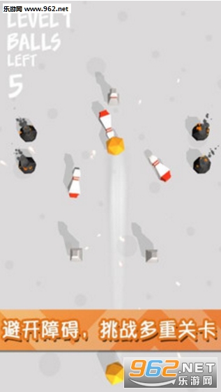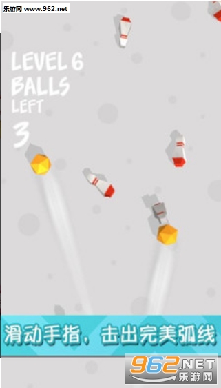 一颗黄色的保龄球是你的所有,单点触控滑动手指,简单到不行的玩法,但是能否击出;