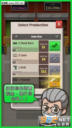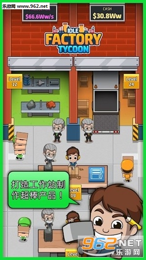 《空闲工厂大亨》是一款模拟流水线生产的模拟经营类手游,玩家将扮演一个工厂的管理者,通过点击流水线各个位置的工人命令他们进行工作,每个位置的员工只会做分内的事,所以我们必须要严格按照生产顺序安排他们工作,一环出错就全乱了套。