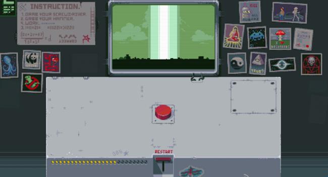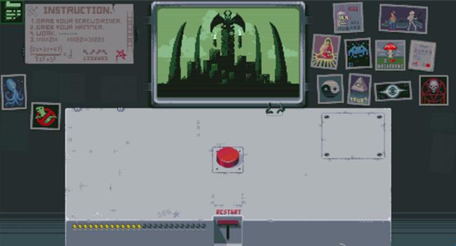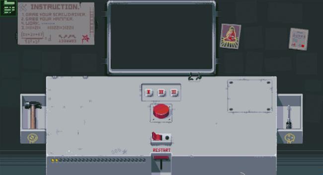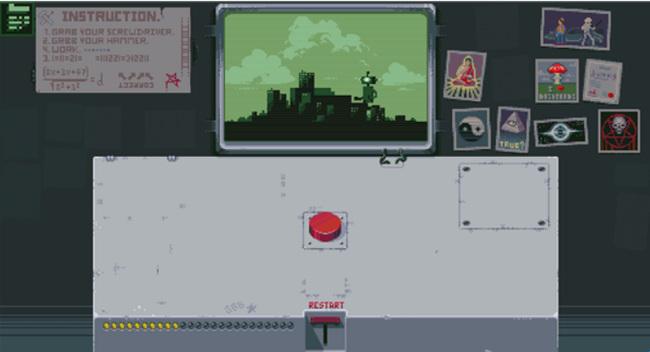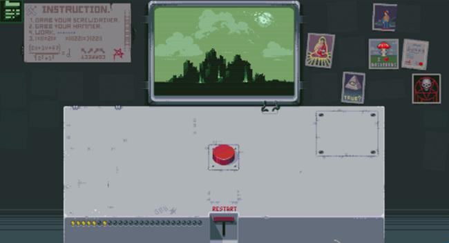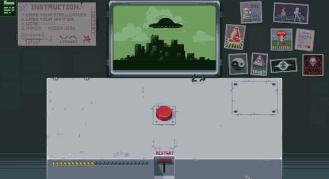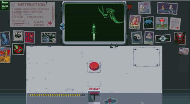 游戏采用第一人称视角,玩家要为一名上厕所的同事代班,而玩家的面前只有一个神秘的面板和红色的按钮,虽然同事千叮万嘱不要碰任何东西,但按钮的吸引力真的能让人控制得住不去碰它吗?游戏的玩法十分丰富,玩家的面前看似只有一个按钮,其实解谜的路线是多种多样的,可以将玩家导向不同的结局,游戏的内容非常丰富。