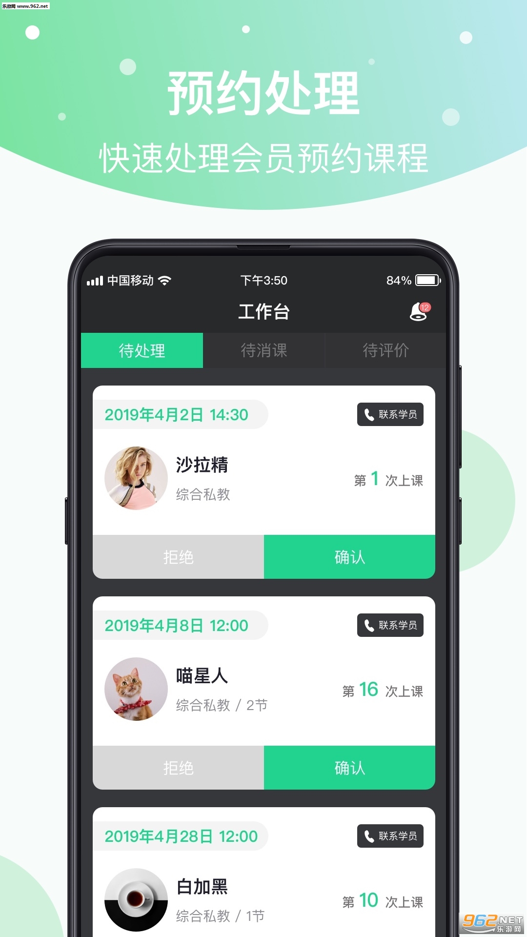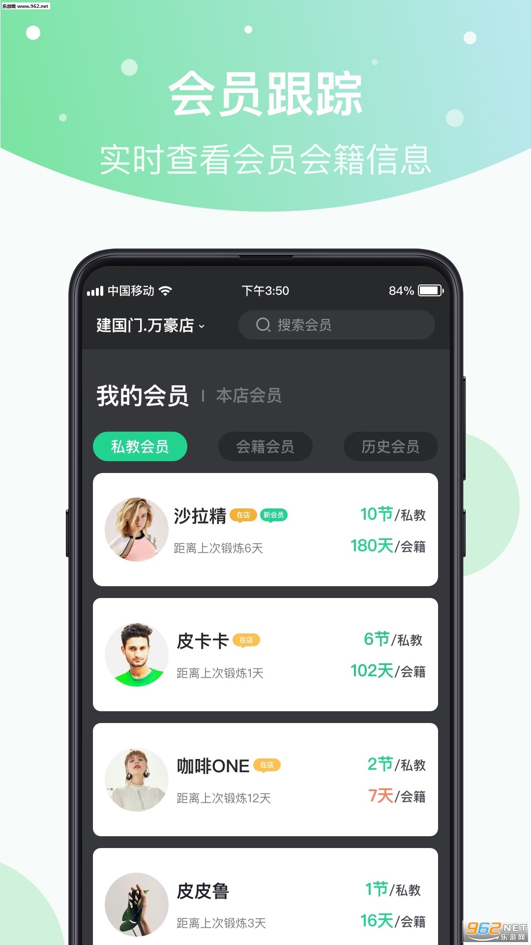 非常使用的一款健身服务工具,操作十分简单,很容易就能够上手,此版本为教练端 ,方便教练对会员和课程的日常安排管理,提升工作和服务的效率!