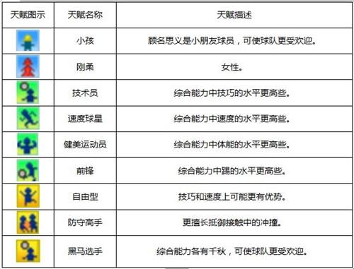 1、不同球员的天赋也是各种各样的,而只有球员自身成长潜力到达一定级别才有不同的天赋描述。如游戏前期,我们会看到很多“专项天赋”的描述