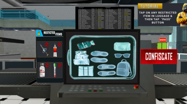 1、丰富多样的物品识别:游戏中包含从日常用品到潜在威胁的各类物品,如非法疫苗、化学物质、受污染样本等。玩家需仔细辨别,确保违禁品无法通过安检,这不仅增加了游戏的可玩性,也提升了挑战性。