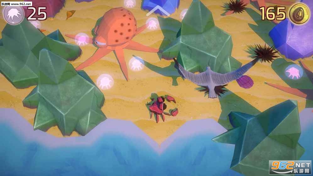 1:游戏拥有精致广阔的大世界等你来自由探索,你需要操控你的螃蟹去躲避这里的天敌生存下去,
