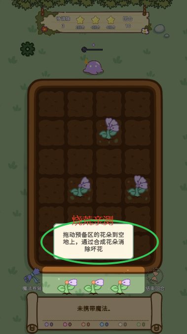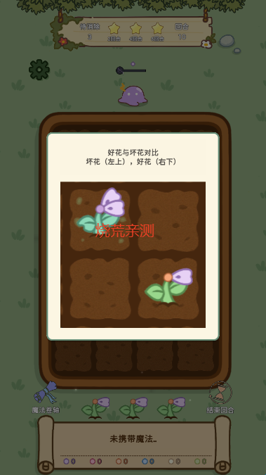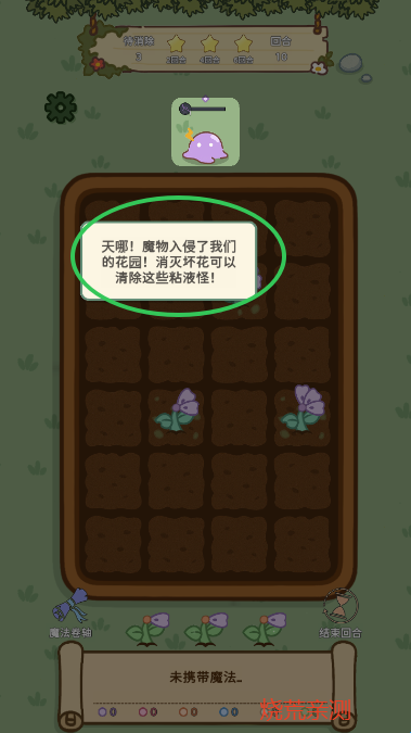 使用魔法消除坏花,消灭魔物,守护我们的花园!