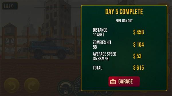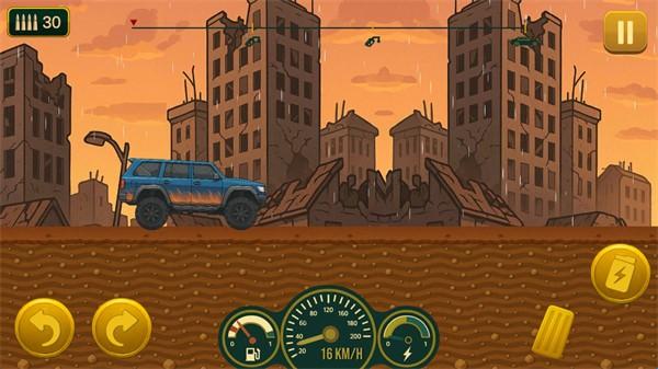 5、操控你的车辆不断前进直到油量耗尽,当油量耗尽后就会结束,结束后会根据你行进的距离来给予不同的金币。
