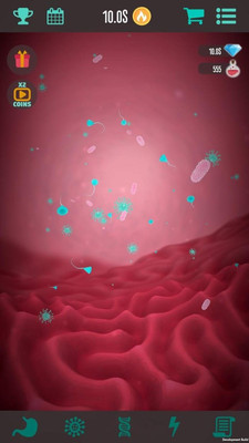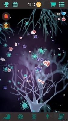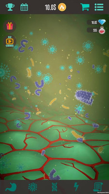 一款细菌题材的休闲放置类手游,游戏中玩家将进入人体的不同的部位,通过微观的视角感受不同的人类世界,放置不同的细菌感受宏大的生物世界。