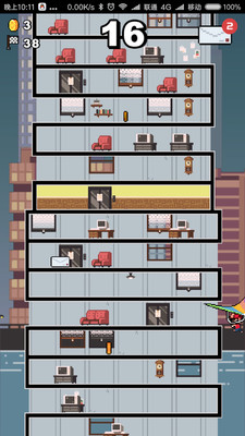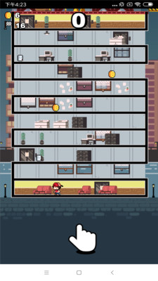 每次点击屏幕时,动画角色都会跳到更高的楼层。楼层越高,游戏越精彩。