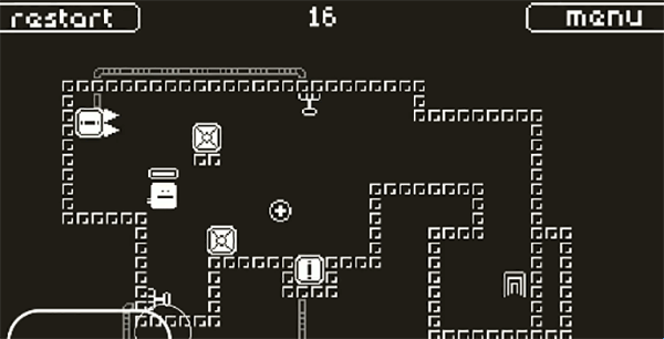 第16关,先滑过去,将第一个箱子推到左边,使其碰到机关,接下来简单来说用你的血条接住被推下来的箱子,再通过升降平台利用物理引擎先把箱子滑到右边,然后推箱子正好到入口上。