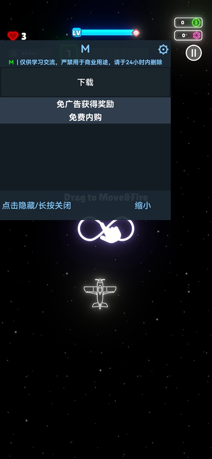 滑动屏幕上下左右控制战机移动