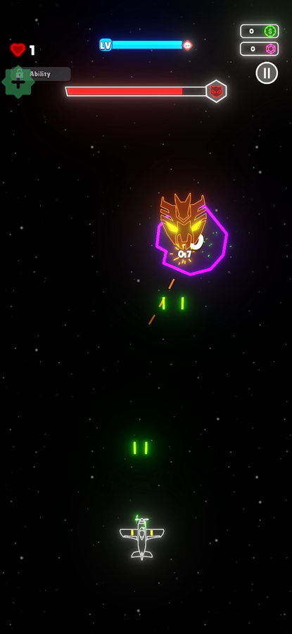 《Neon Wings》是一款复古未来主义竖版飞行射击游戏,融合了高速射击、动态光影与电子合成波音乐,带来沉浸式街机体验。每一场战斗都是对视觉与反应的极限挑战,霓虹光效与故障艺术交织的弹幕,将战场渲染成一场流动的电子盛宴。