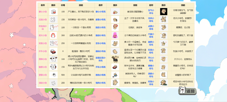 小白大战小鸡毛是根据经典塔防游戏植物大战僵尸进行改编的,游戏将植物形象转化为可爱的小白狗,僵尸者是棕色小狗,画风温馨可爱,还融合了超多创意设计,玩家们要做的就是通过小白狗的各种技能来进行合理的放置,并抵抗名为小鸡毛的棕色小狗们的进攻,游戏已经为玩家们提供了详细的角色技能图鉴,完全可以轻松上手体验全新的塔防游戏乐趣。