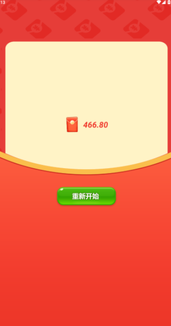 3、初始金额为零,通过快速点击屏幕上不断飘落的红包来累积财富值。