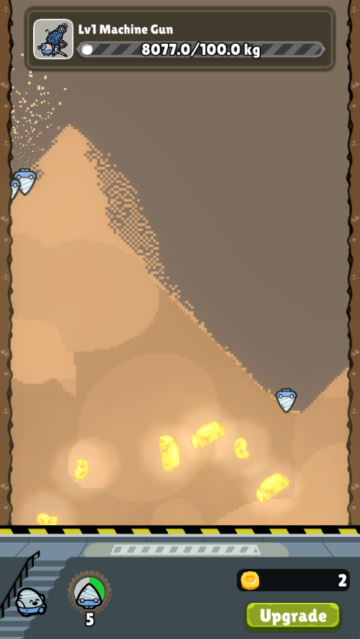 2、玩家只需通过简单的弹射操作,将矿工发射到地下,观看他们自动挖掘泥土,收集丰富的资源与黄金