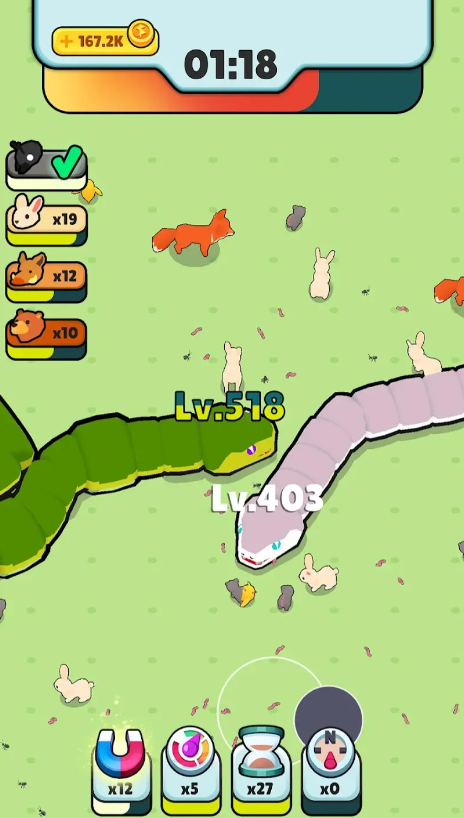 2、每吞噬一份食物,你的身体就会变得更长,力量也会随之增强。