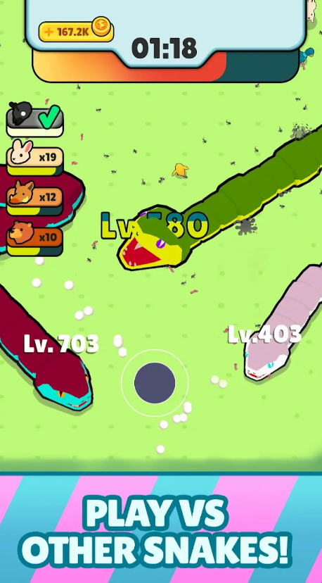 愤怒贪吃蛇是一款将贪吃蛇进行全新改编得来的经典休闲闯关游戏,游戏中的贪吃蛇形象也加入了更多的创意设定,玩家们要做的就是和幸运狮一起合作,保护自己的城镇安全,通过吞噬的方式来不断壮大自己的实力,游戏玩法模式丰富多样,而且对于有贪吃蛇游戏经验的玩家来说绝对可以轻松上手体验,让你玩一下全新的贪吃蛇。