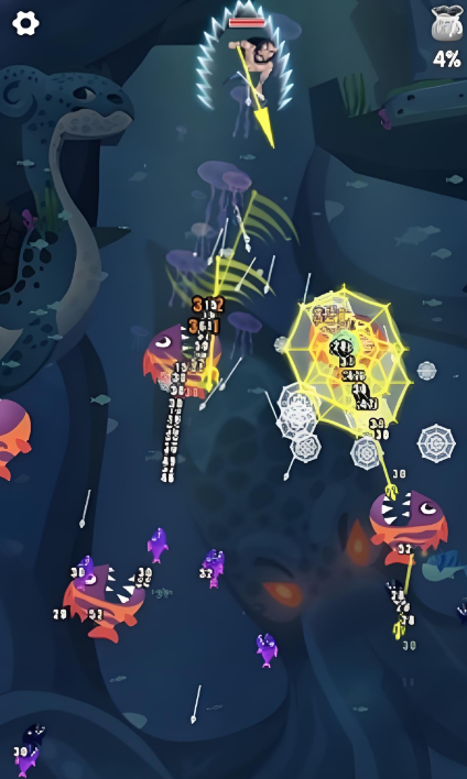 4、不断投掷鱼叉,干掉身边的鱼儿。