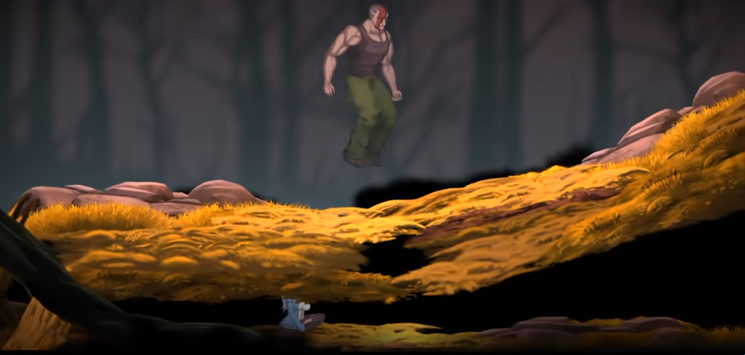 6、碰到眼睛花的时候走过去触发剧情,等他一睁眼马上加速往后跑钻到下面去,然后在里面躲他的触手几次后会出现一根藤蔓,要赶快抓住不然会被左边的乌龟怪给顶出去。