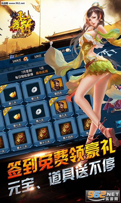 三、登录签到每日豪礼赠送不断,招募令,乌金战甲,2星典韦仍你来拿。