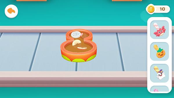 接下来,用户可以根据自己的口味,为冰淇淋选择喜欢的调味料;游戏的右侧有一个专门的调味料区,用户可以选择宝宝最喜欢的口味;