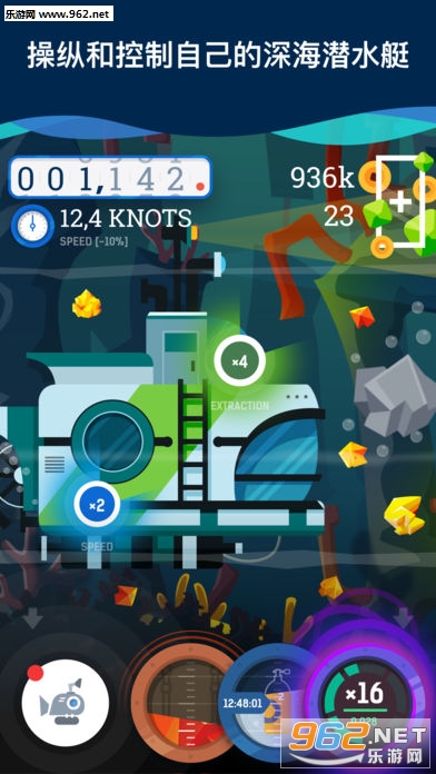 采集资源,交换和制作新部件,升级您的深海潜水艇!