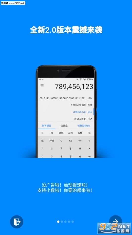《程序员计算器手机版》是一款为做程序员的朋友们打造的多功能手机计算器,使用本款软件可以对二进制、八进制、十六进制等各种不同的进制之间进行转换,有着数字键盘、位移键盘和长整型64bit三种不同的功能模块。