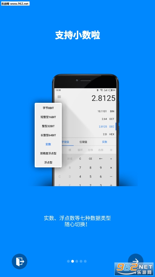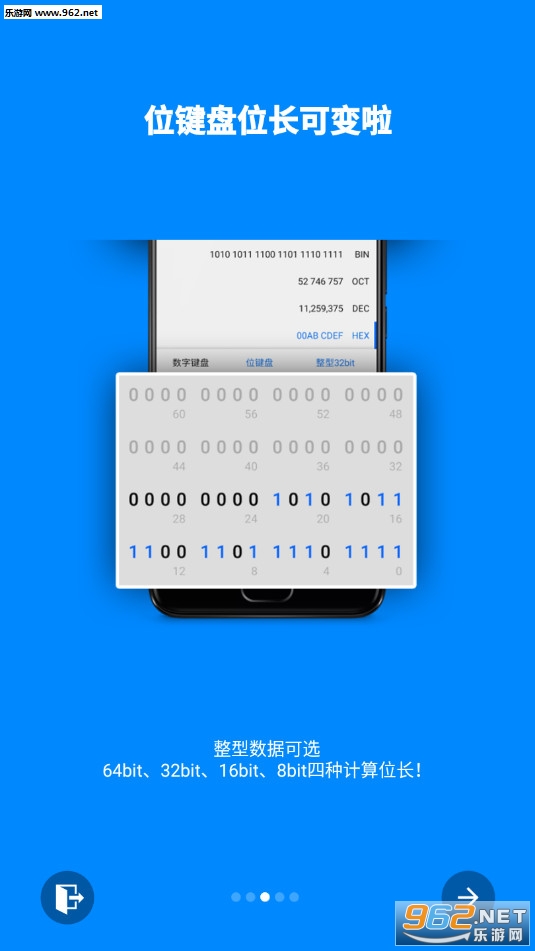 程序员计算器是为广大程序员朋友开发的计算器,特别提供了位键盘,可以直接对当前数的二进制的每一位直接进行操作,