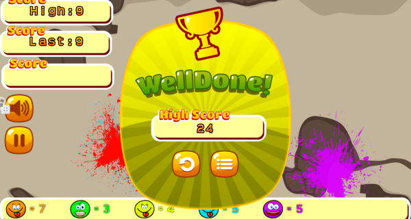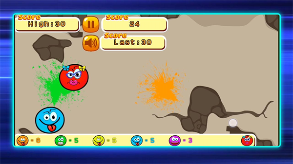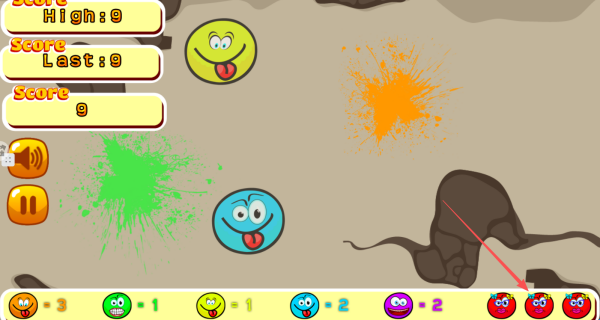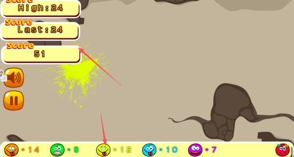 3、可以随时在左上角查看当前我们点击的分数,以及各个不同颜色表情的数量。