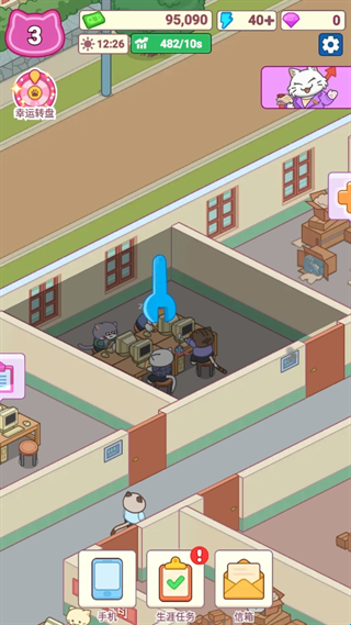 每天上线后,先参与幸运转盘抽奖,若幸运抽到“老板画饼券”,可让好友的产能减少30%,或获得“黄金砖块”直接兑换金币。