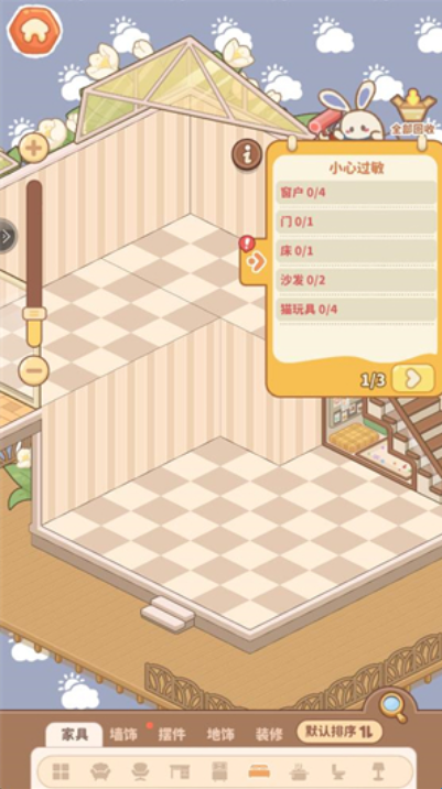 4、点击需要放置的家具类型可以选择不同的家具,其中右上角带有木板标记的是可以达成要求的家具。