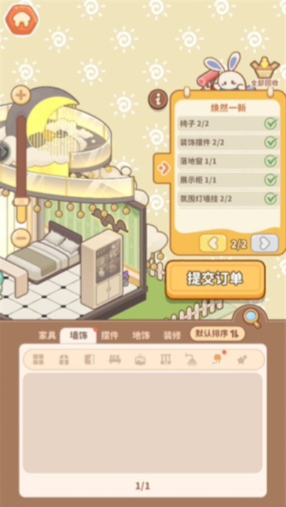 5、当放置完所有家具后就可以点击提交订单来获得奖励。