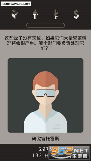 2075年,你的国家面临毁灭。战争、疾病以及神秘的外星生物影响着这个世界的方方面面。你只需要滑动卡片,就可以决定一项政策,从而维持国家的发展。但切记,军队、人民、财政、粮食,任何一项都不能过高或多低,否则就会翻车。对,这游戏就是个《王权》的翻版啦……