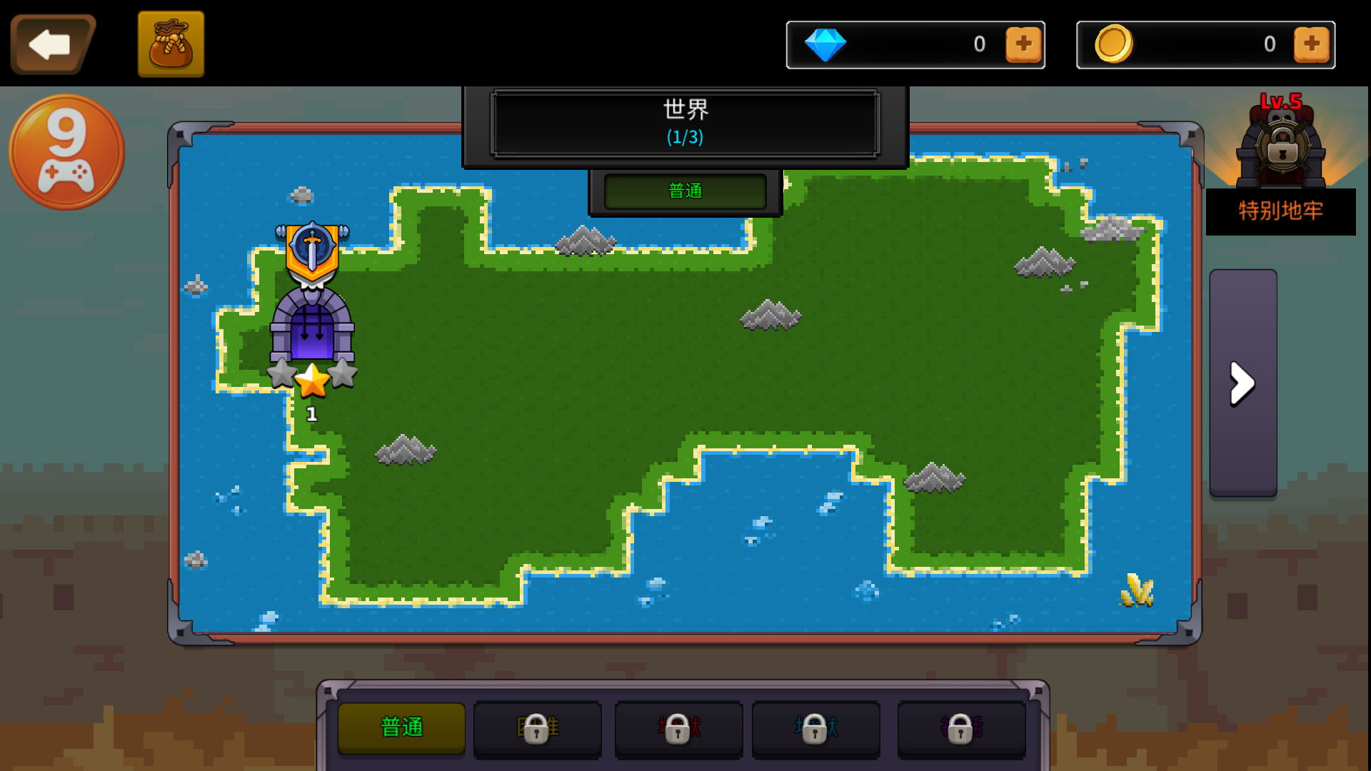 3、选择难度和关卡进入。