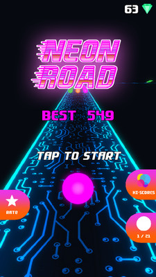 《霓虹路安卓版》是一款挺好玩的敏捷闯关休闲类游戏,拥有霓虹灯般的场景画面,游戏采用了滚球的玩法,玩家需要在游戏中控制你的球球左右的移动,躲避各种障碍,收集星星,解锁更多的球球和关卡,玩法简单易上手,赶紧下载吧!
